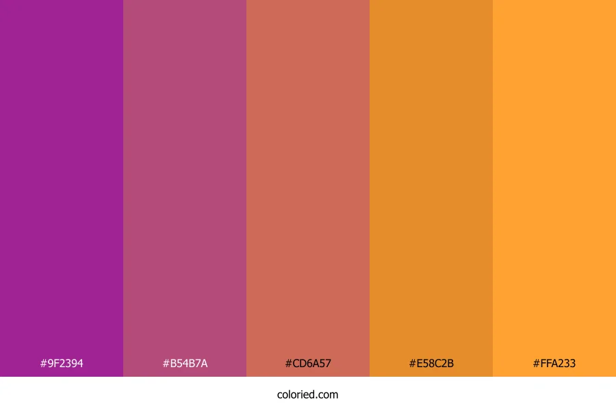 ![]() | #9F2394 | 159, 35, 148 | 305, 64%, 38% | 0%, 78%, 7%, 38% | oklch(0.501 0.199 332) |