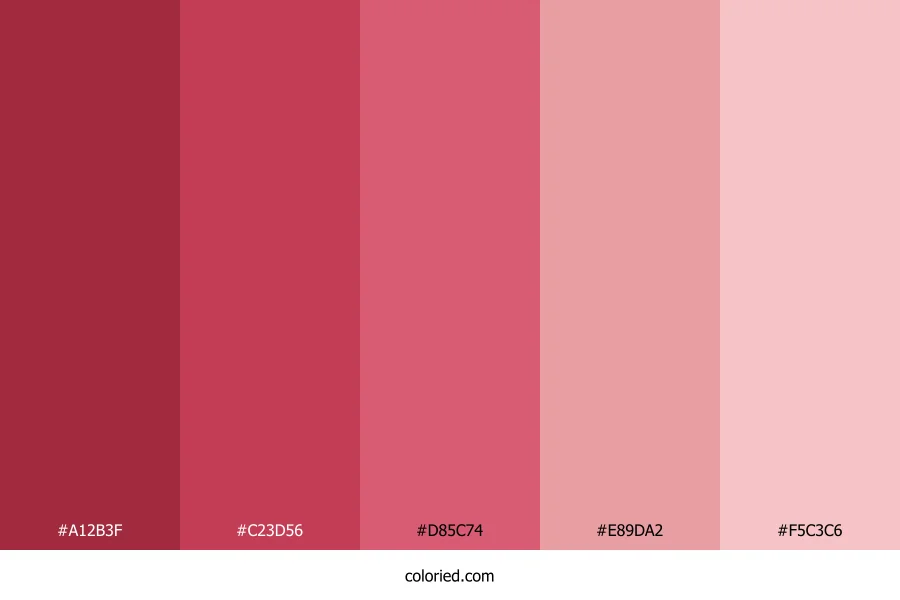 ![]() | #A12B3F | 161, 43, 63 | 350, 58%, 40% | 0%, 73%, 61%, 37% | oklch(0.478 0.153 16) |