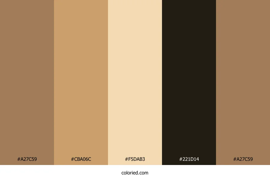 ![]() | #A27C59 | 162, 124, 89 | 29, 29%, 49% | 0%, 23%, 45%, 36% | oklch(0.615 0.068 64) |