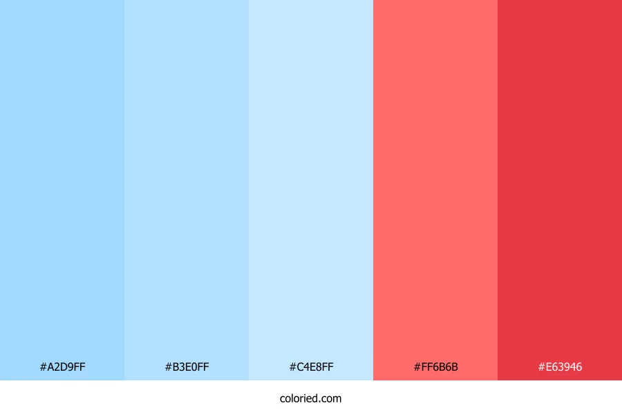 | #E63946 | 230, 57, 70 | 355, 78%, 56% | 0%, 75%, 70%, 10% | oklch(0.612 0.208 22) |