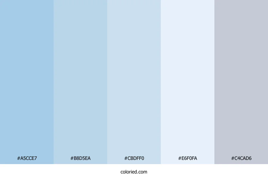 | #CBDFF0 | 203, 223, 240 | 208, 55%, 87% | 15%, 7%, 0%, 6% | oklch(0.894 0.032 244) | |