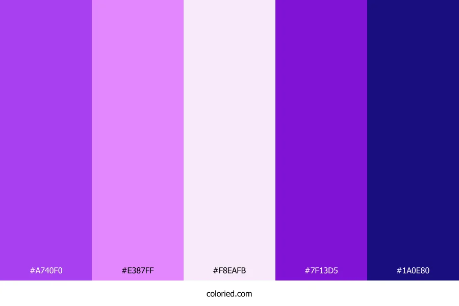 ![]() | #A740F0 | 167, 64, 240 | 275, 85%, 60% | 30%, 73%, 0%, 6% | oklch(0.598 0.250 307) |