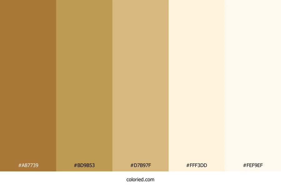 ![]() | #A87739 | 168, 119, 57 | 34, 49%, 44% | 0%, 29%, 66%, 34% | oklch(0.607 0.100 70) |