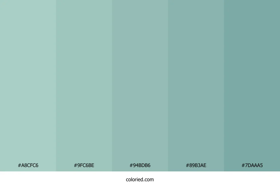 ![]() | #A8CFC6 | 168, 207, 198 | 166, 29%, 74% | 19%, 0%, 4%, 19% | oklch(0.824 0.043 180) |