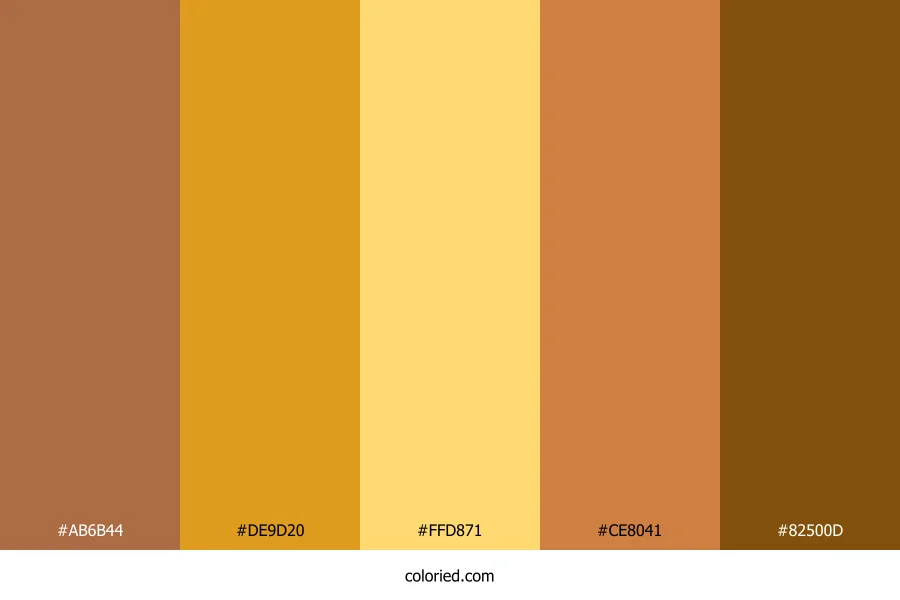 | #CE8041 | 206, 128, 65 | 27, 59%, 53% | 0%, 38%, 68%, 19% | oklch(0.671 0.124 57) | |