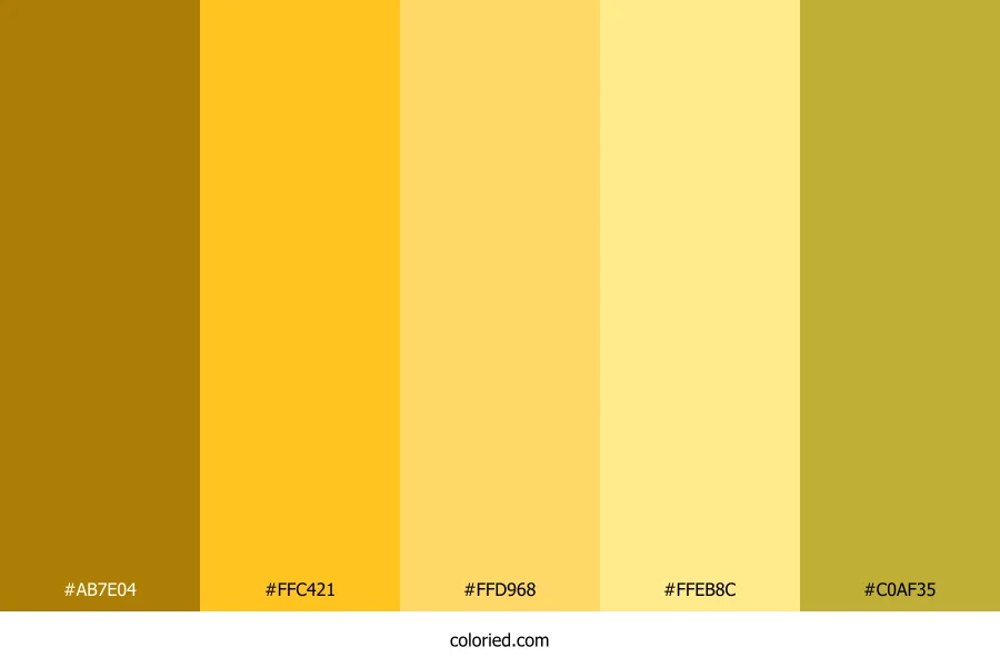 | #C0AF35 | 192, 175, 53 | 53, 57%, 48% | 0%, 9%, 72%, 25% | oklch(0.747 0.138 101) |