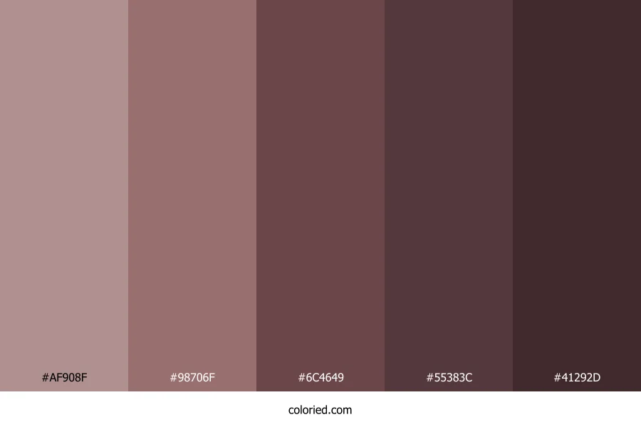 ![]() | #AF908F | 175, 144, 143 | 2, 17%, 62% | 0%, 18%, 18%, 31% | oklch(0.681 0.038 20) |