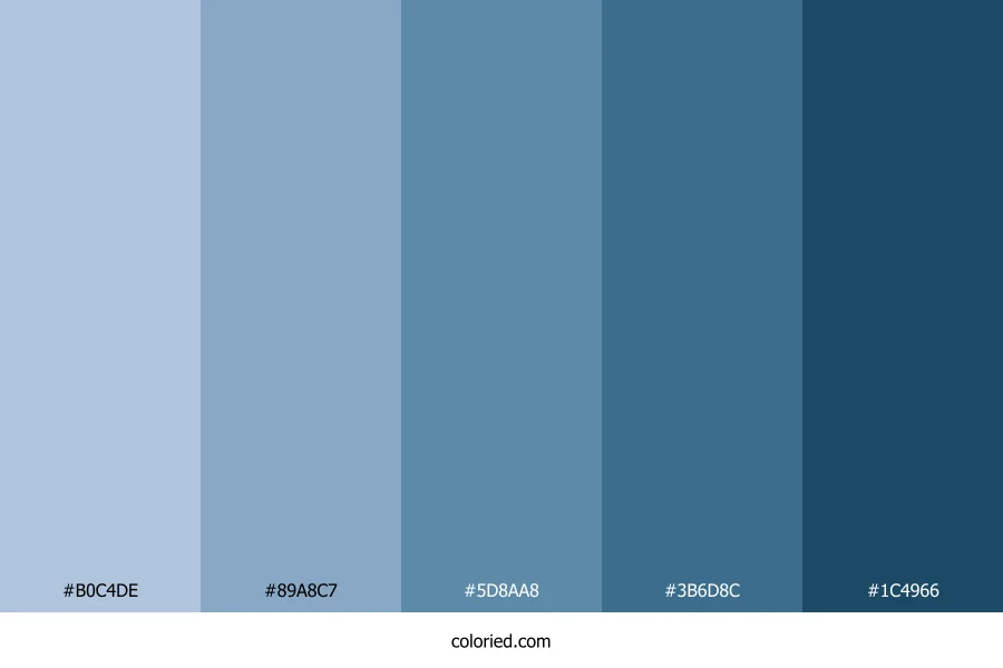 ![]() | #B0C4DE | 176, 196, 222 | 214, 41%, 78% | 21%, 12%, 0%, 13% | oklch(0.814 0.043 255) |