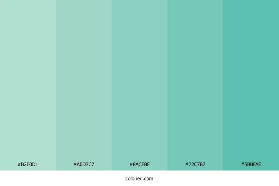 ![]() | #B2E0D1 | 178, 224, 209 | 160, 43%, 79% | 21%, 0%, 7%, 12% | oklch(0.870 0.052 173) |