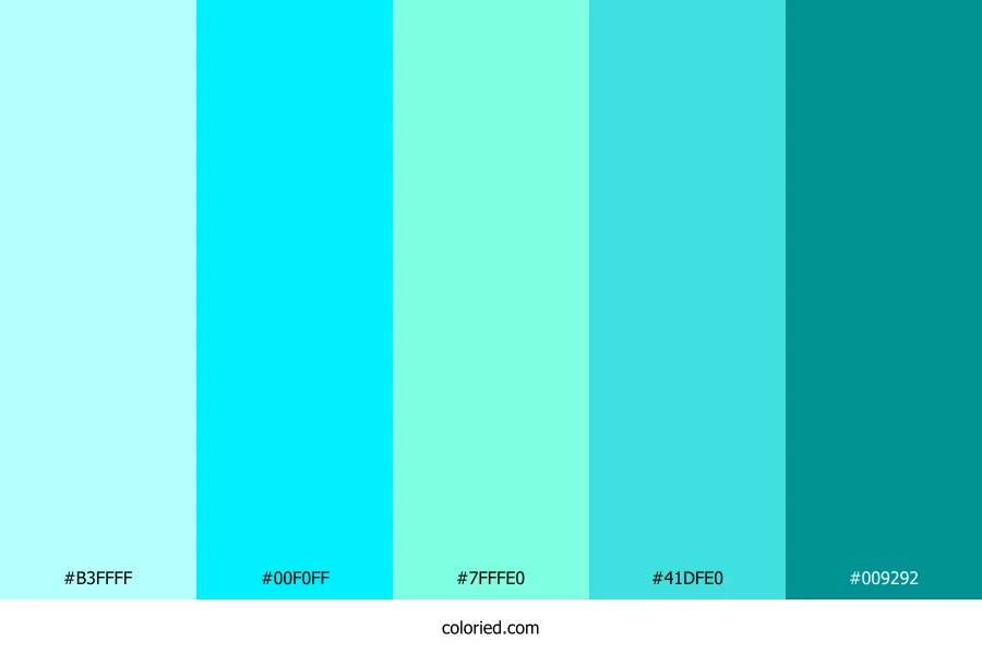 | #41DFE0 | 65, 223, 224 | 180, 72%, 57% | 71%, 0%, 0%, 12% | oklch(0.825 0.127 196) | |