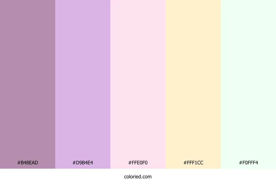 ![]() | #B48EAD | 180, 142, 173 | 311, 20%, 63% | 0%, 21%, 4%, 29% | oklch(0.692 0.063 333) |