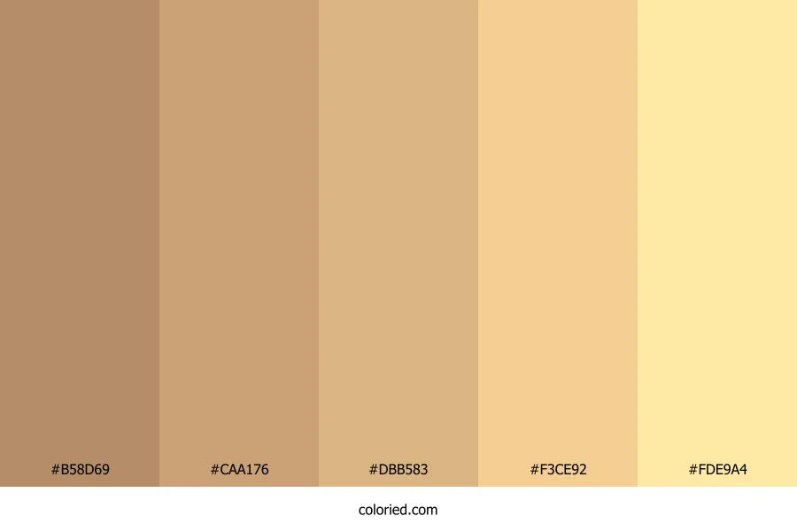 ![]() | #B58D69 | 181, 141, 105 | 28, 34%, 56% | 0%, 22%, 42%, 29% | oklch(0.673 0.070 63) |