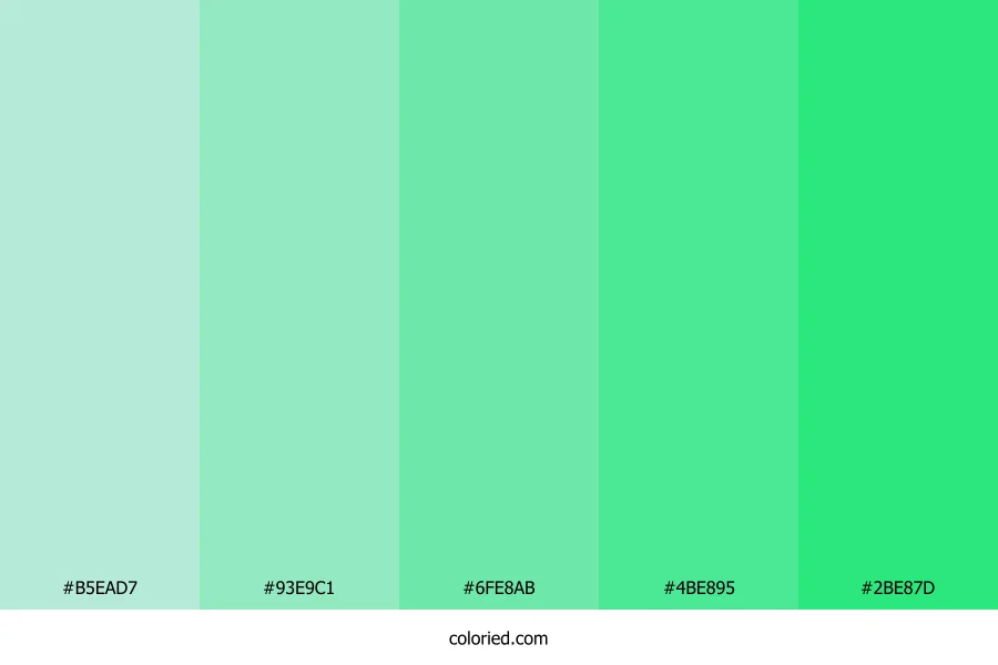 ![]() | #B5EAD7 | 181, 234, 215 | 158, 56%, 81% | 23%, 0%, 8%, 8% | oklch(0.895 0.060 171) |