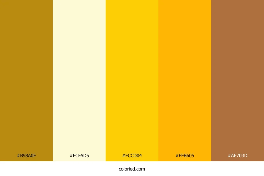 ![]() | #B98A0F | 185, 138, 15 | 43, 85%, 39% | 0%, 25%, 92%, 27% | oklch(0.661 0.133 84) |