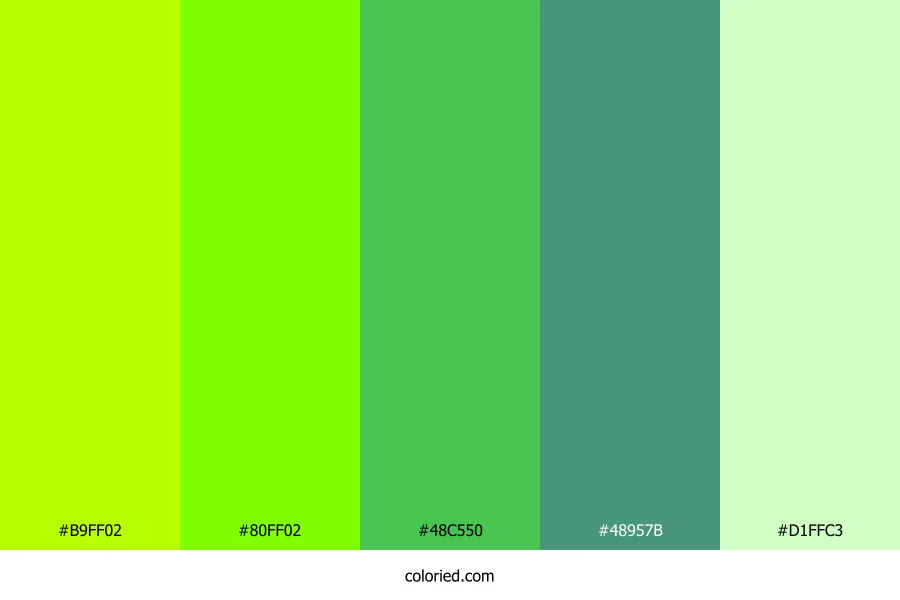 | #80FF02 | 128, 255, 2 | 90, 100%, 50% | 50%, 0%, 99%, 0% | oklch(0.891 0.264 136) | |