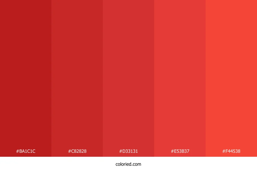 ![]() | #BA1C1C | 186, 28, 28 | 0, 74%, 42% | 0%, 85%, 85%, 27% | oklch(0.507 0.191 28) |