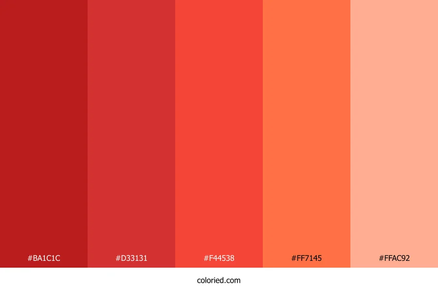 | #F44538 | 244, 69, 56 | 4, 90%, 59% | 0%, 72%, 77%, 4% | oklch(0.645 0.213 29) | |