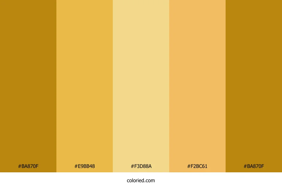 ![]() | #BA870F | 186, 135, 15 | 42, 85%, 39% | 0%, 27%, 92%, 27% | oklch(0.656 0.132 81) |