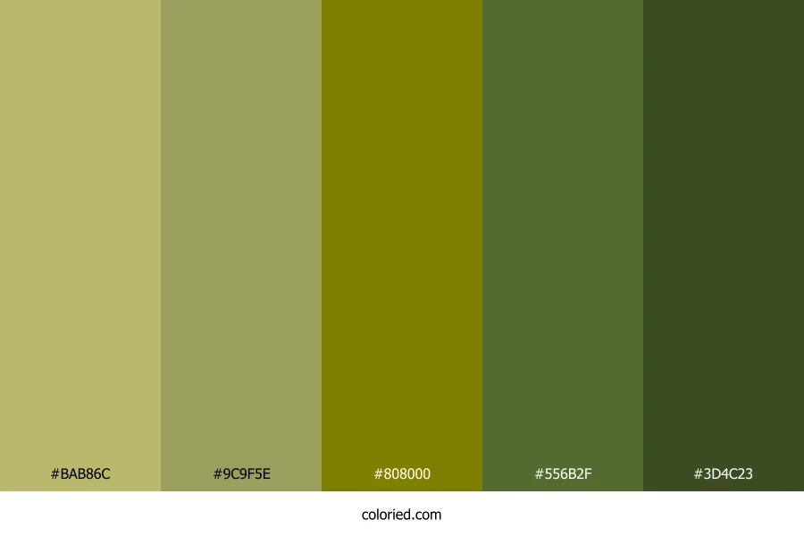 ![]() | #BAB86C | 186, 184, 108 | 58, 36%, 58% | 0%, 1%, 42%, 27% | oklch(0.767 0.098 107) |
