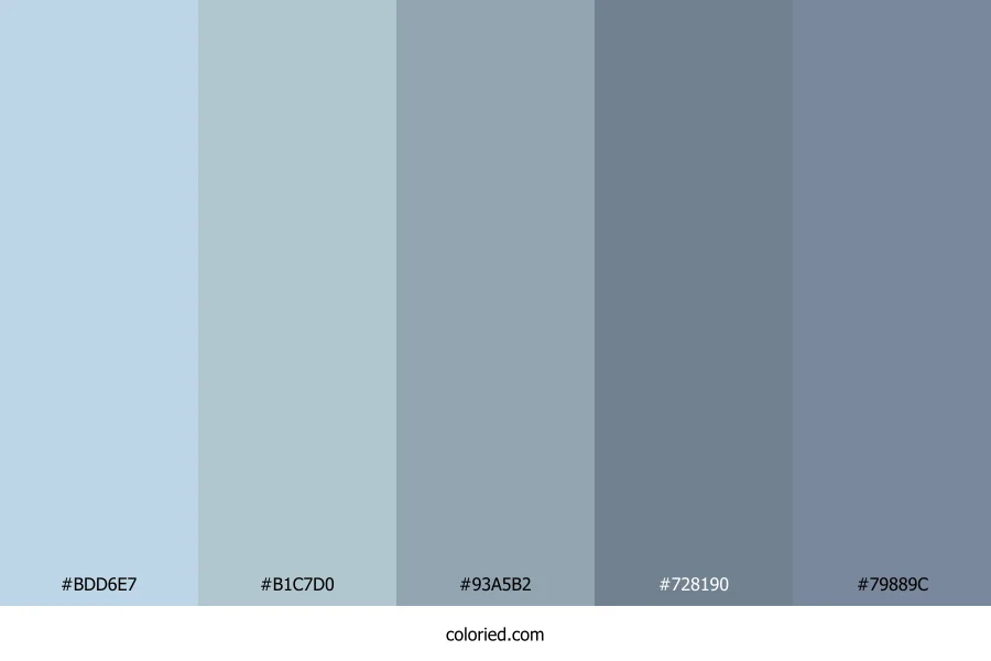 ![]() | #BDD6E7 | 189, 214, 231 | 204, 47%, 82% | 18%, 7%, 0%, 9% | oklch(0.863 0.036 238) |