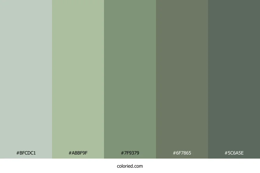 ![]() | #BFCDC1 | 191, 205, 193 | 129, 12%, 78% | 7%, 0%, 6%, 20% | oklch(0.834 0.022 150) |
