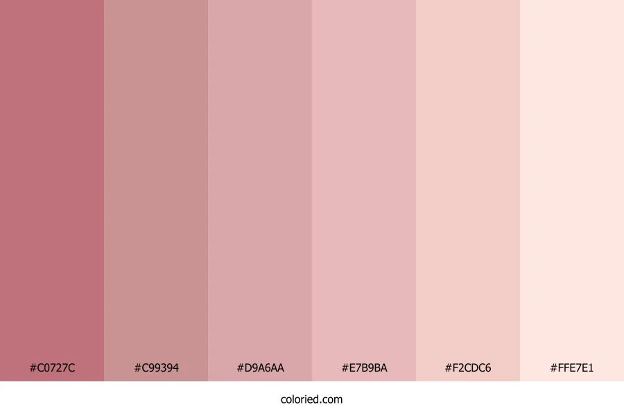 | #E7B9BA | 231, 185, 186 | 359, 49%, 82% | 0%, 20%, 19%, 9% | oklch(0.827 0.053 17) | |