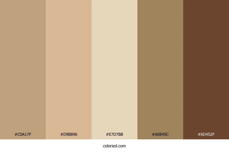 ![]() | #C0A17F | 192, 161, 127 | 31, 34%, 63% | 0%, 16%, 34%, 25% | oklch(0.728 0.059 69) |