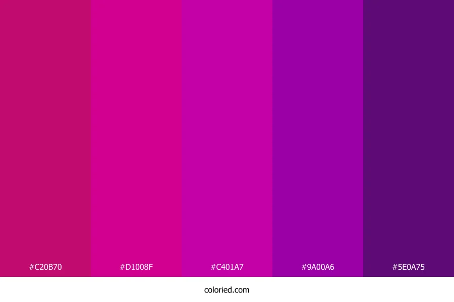 | #5E0A75 | 94, 10, 117 | 287, 84%, 25% | 20%, 91%, 0%, 54% | oklch(0.361 0.167 317) |