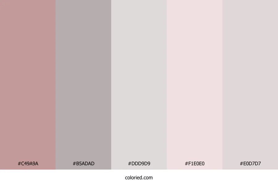 ![]() | #C49A9A | 196, 154, 154 | 0, 26%, 69% | 0%, 21%, 21%, 23% | oklch(0.725 0.050 18) |