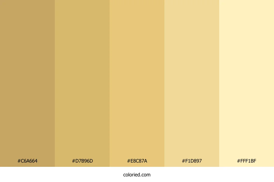 | #F1D897 | 241, 216, 151 | 43, 76%, 77% | 0%, 10%, 37%, 5% | oklch(0.888 0.087 89) | |