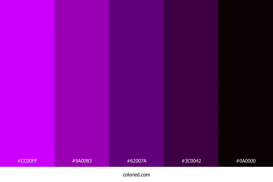 | #9A00B3 | 154, 0, 179 | 292, 100%, 35% | 14%, 100%, 0%, 30% | oklch(0.499 0.239 320) | |
