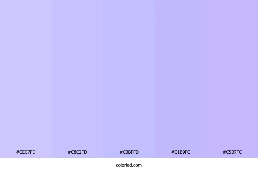 | #C1B9FC | 193, 185, 252 | 247, 92%, 86% | 23%, 27%, 0%, 1% | oklch(0.816 0.094 290) | |