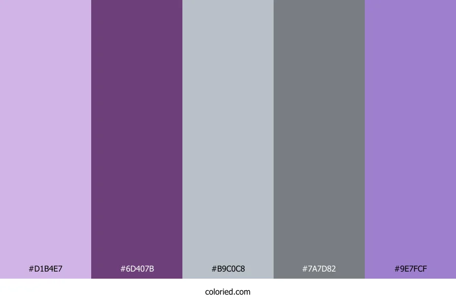![]() | #D1B4E7 | 209, 180, 231 | 274, 52%, 81% | 10%, 22%, 0%, 9% | oklch(0.812 0.077 310) |