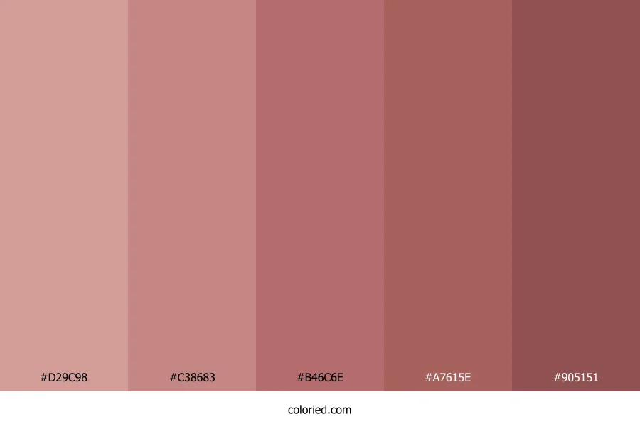 ![]() | #D29C98 | 210, 156, 152 | 4, 39%, 71% | 0%, 26%, 28%, 18% | oklch(0.743 0.065 24) |