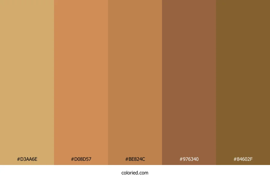 | #D08D57 | 208, 141, 87 | 27, 56%, 58% | 0%, 32%, 58%, 18% | oklch(0.699 0.108 59) | |