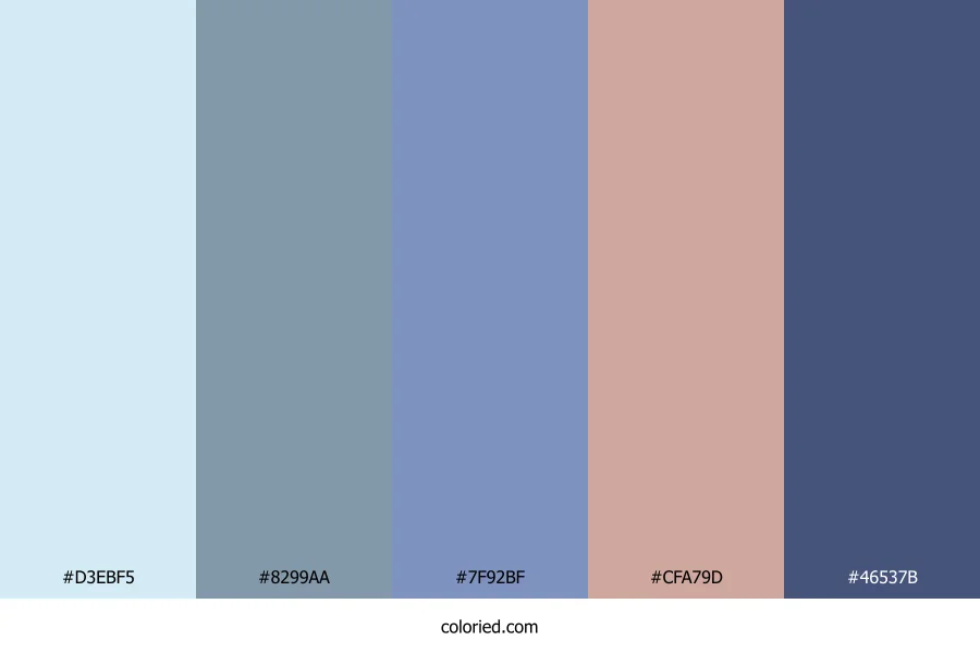 | #7F92BF | 127, 146, 191 | 222, 33%, 62% | 34%, 24%, 0%, 25% | oklch(0.662 0.071 267) | |