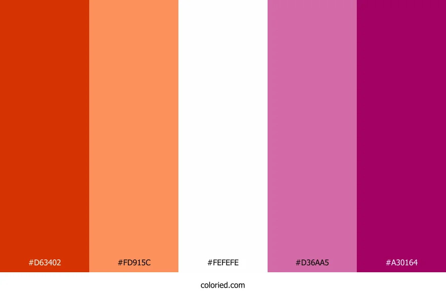 ![]() | #D63402 | 214, 52, 2 | 14, 98%, 42% | 0%, 76%, 99%, 16% | oklch(0.575 0.204 34) |