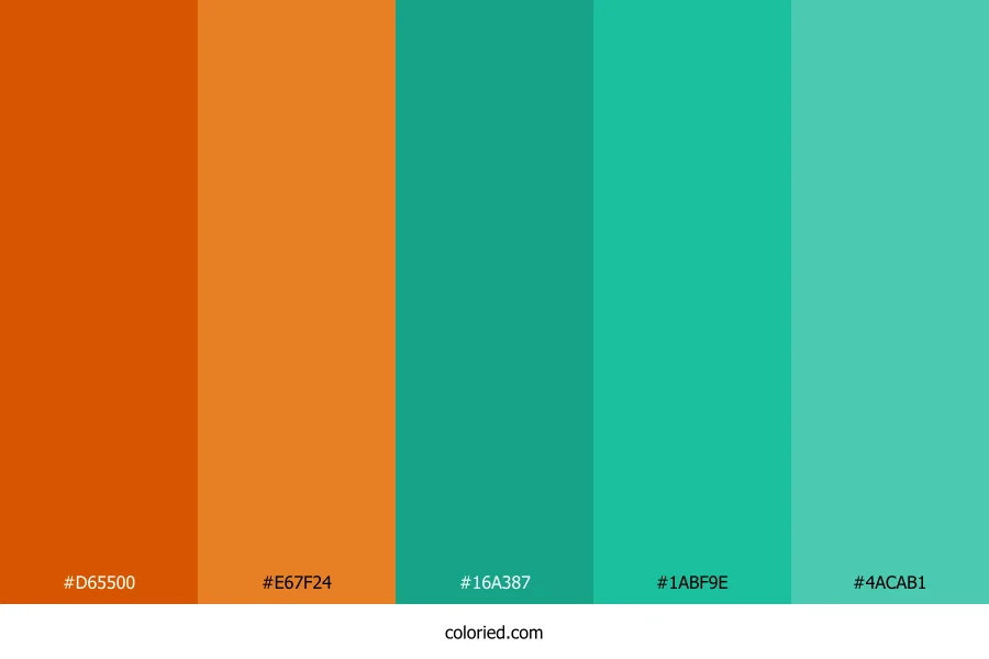 ![]() | #D65500 | 214, 85, 0 | 24, 100%, 42% | 0%, 60%, 100%, 16% | oklch(0.610 0.178 44) |