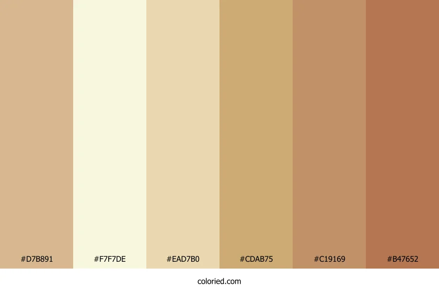 ![]() | #D7B891 | 215, 184, 145 | 33, 47%, 71% | 0%, 14%, 33%, 16% | oklch(0.800 0.063 73) |