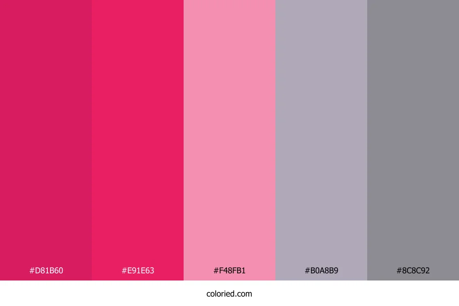 | #F48FB1 | 244, 143, 177 | 340, 82%, 76% | 0%, 41%, 27%, 4% | oklch(0.766 0.128 359) | |