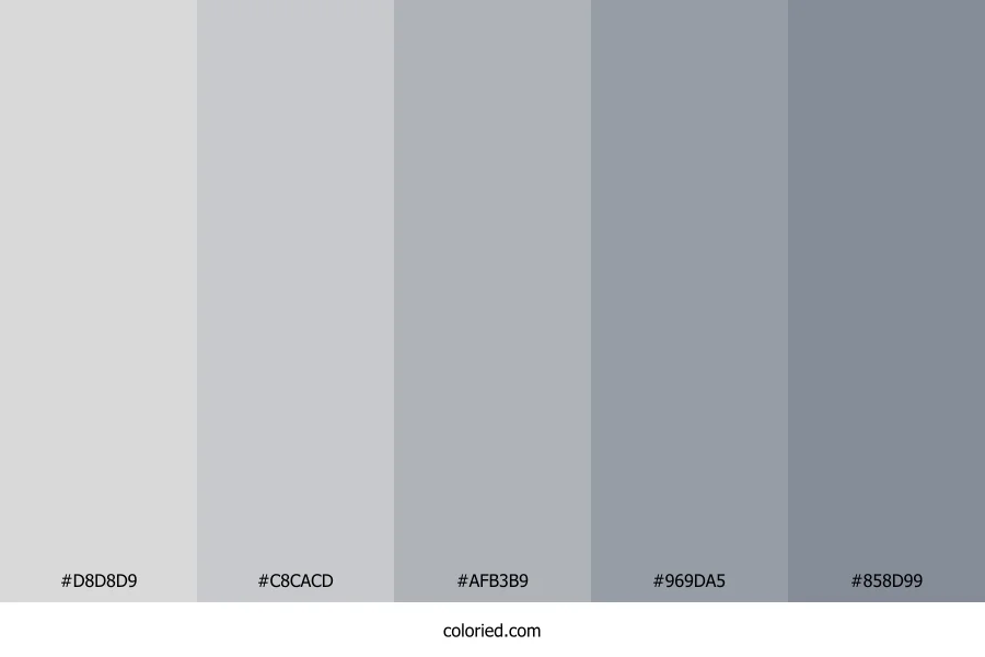 | #969DA5 | 150, 157, 165 | 212, 8%, 62% | 9%, 5%, 0%, 35% | oklch(0.693 0.014 252) | |
