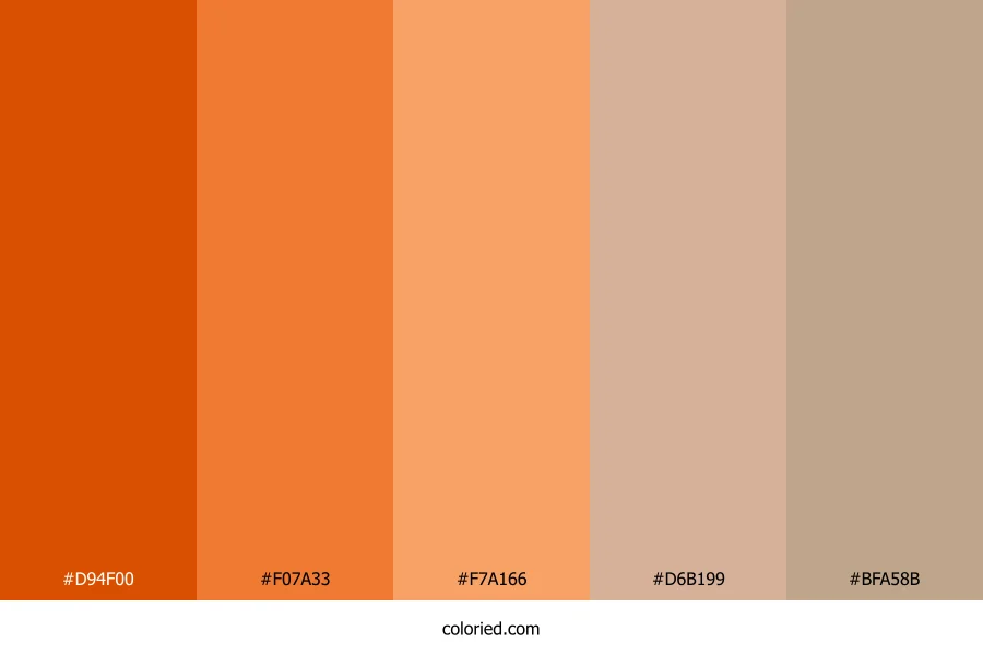 ![]() | #D94F00 | 217, 79, 0 | 22, 100%, 43% | 0%, 64%, 100%, 15% | oklch(0.608 0.186 41) |