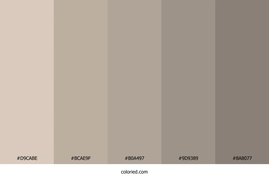 ![]() | #D9CABE | 217, 202, 190 | 27, 26%, 80% | 0%, 7%, 12%, 15% | oklch(0.848 0.023 61) |