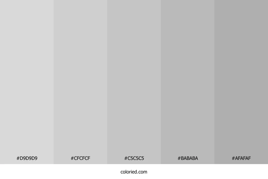 | #AFAFAF | 175, 175, 175 | 0, 0%, 69% | 0%, 0%, 0%, 31% | oklch(0.754 0.000 263) |