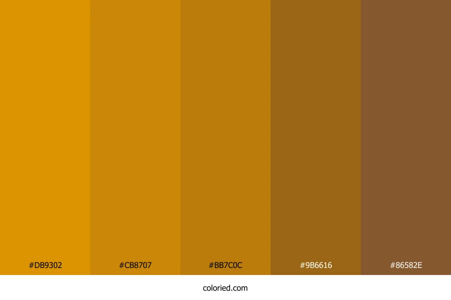 ![]() | #DB9302 | 219, 147, 2 | 40, 98%, 43% | 0%, 33%, 99%, 14% | oklch(0.718 0.152 74) |