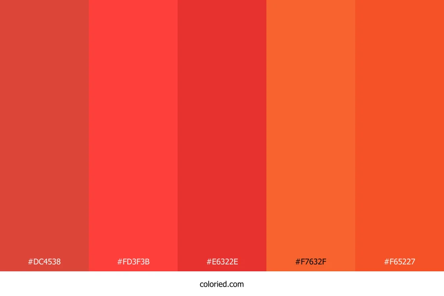 ![]() | #DC4538 | 220, 69, 56 | 5, 70%, 54% | 0%, 69%, 75%, 14% | oklch(0.605 0.190 29) |