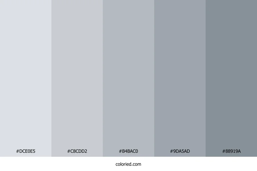 ![]() | #DCE0E5 | 220, 224, 229 | 213, 15%, 88% | 4%, 2%, 0%, 10% | oklch(0.905 0.008 254) |