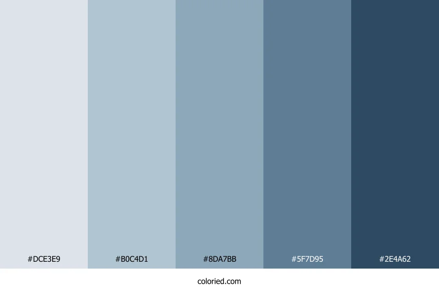 ![]() | #DCE3E9 | 220, 227, 233 | 208, 23%, 89% | 6%, 3%, 0%, 9% | oklch(0.912 0.011 244) |