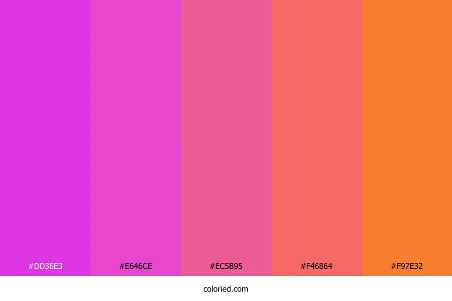 ![]() | #DD36E3 | 221, 54, 227 | 298, 76%, 55% | 3%, 76%, 0%, 11% | oklch(0.653 0.267 327) |