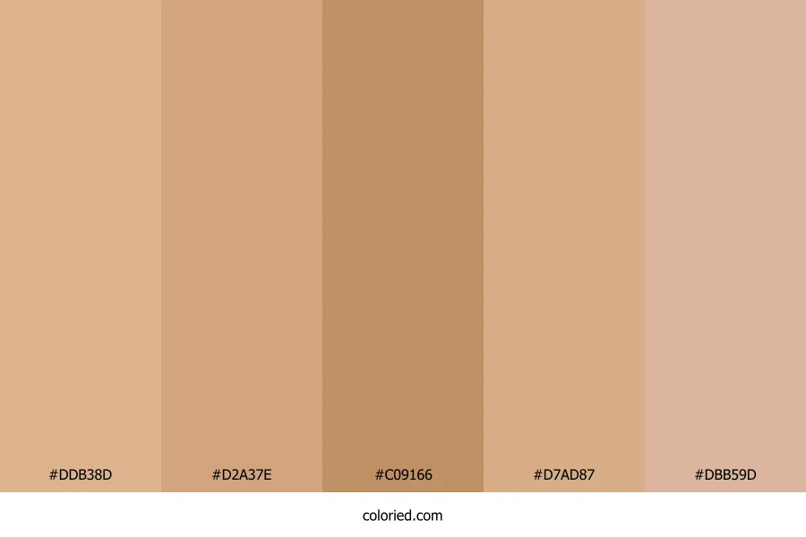 ![]() | #DDB38D | 221, 179, 141 | 28, 54%, 71% | 0%, 19%, 36%, 13% | oklch(0.795 0.071 64) |